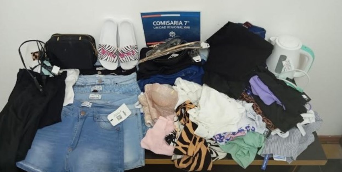 Cerca de la medianoche del domingo, personal policial fue convocado para dirigirse a Cayetano Silva y Avda. San Martín, en esta ciudad, por un hecho de robo. El objetivo era dar con un sujeto que iba con un bolso y estaba cerca de esa esquina por lo cual a pocas cuadras, en Irigoyen y Sarmiento, lo vieron, lo retuvieron, y le secuestraron un estuche con cosméticos, 23 remeras de diferentes talles y colores, 19 shorts, 9 pantalones de jean, un teléfono celular, un cargador de computadora, 4 cintos de diferentes modelos y colores, una pava eléctrica, y un destornillador.