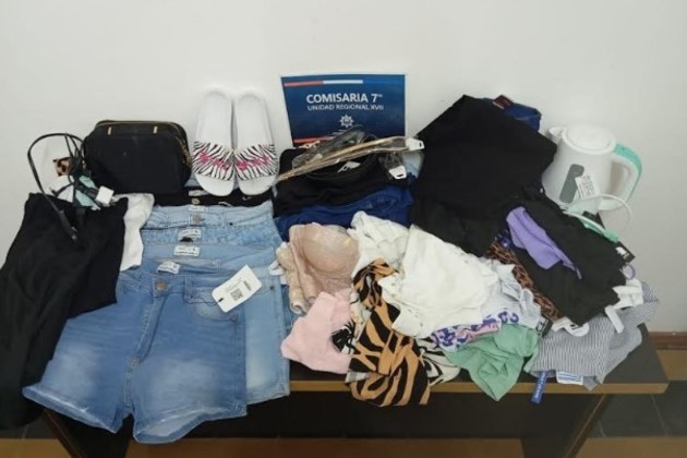 Un hombre marchaba en actitud sospechosa y le encontraron con un montón de ropa y otros elementos en un bolso, lógicamente, robados. Crédito: Unidad Regional XVII de San Lorenzo.