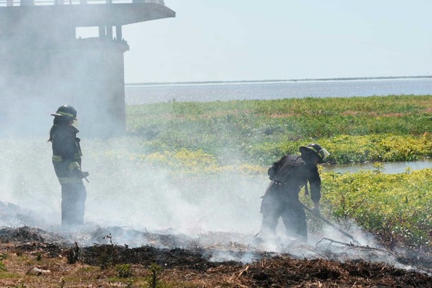 Este jueves se reactivó el foco ígneo en la parte seca del embalsado que está estacionado en el margen Este de la laguna Setúbal.