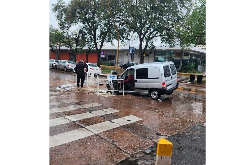 Una semana después, una camioneta utilitaria quedó atrapada en el lugar. Se trata de un vehículo marca Peugeot Partner, cuya rueda delantera izquierda y parte del frente quedó inmersa en el bache.