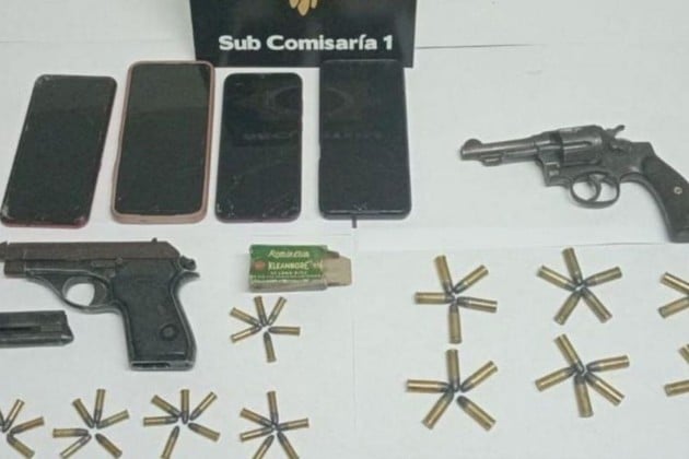 Los uniformados irrumpieron en el lugar y aprehendieron al sospechoso. Además, incautaron un revólver calibre .32 largo con la numeración limada marca Tanque, una pistola calibre .22 largo Bersa, municiones y cuatro teléfonos celulares.