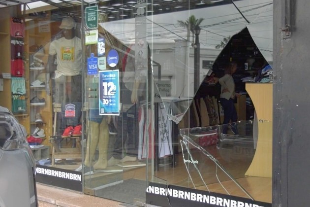 El vidrio, de alto espesor, fue quebrado a golpes —posiblemente con un fierro— y los ladrones se las ingeniaron para robar todo lo que había en exhibición a través de las rejas del comercio: remeras, camisas, chombas. “Me avisó la chica que vive arriba que había escuchado una explosión. Me llamó tipo 2:35 y cuando llegué me encontré con todo roto”, relató.
