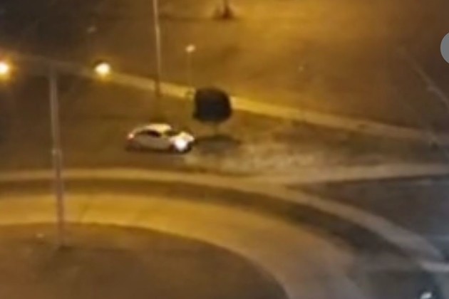 En un video captado desde los departamentos ubicados sobre las calles Padilla y Belgrano, en los conocidos edificios del Procrear, se puede ver a un automóvil atravesando la zona parquizada a toda velocidad.
