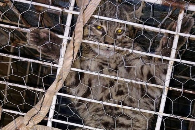 Mediante maniobras no invasivas, los especialistas capturaron al gato montés, de tamaño mediano, y lo encerraron en una jaula provista para evitar riesgos en el traslado.