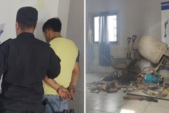 A todo esto ya habían arribado al lugar gran cantidad de agentes que llegaron en colaboración. Se intentó "negociar" con los violentos para que depongan su actitud y tras varios minutos de tensión finalmente se pudo ingresar a la finca donde el hombre entregó una pistola calibre 9 mm. y una carabina, calibre 22.