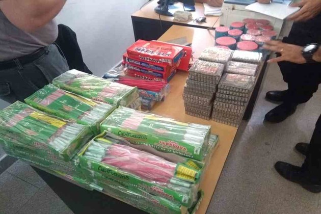 En total, los uniformados secuestraron diez kilogramos de diferentes artículos: 216 candelas 10 tiros, 238 cañitas voladoras,230 estallos. 36 huevos de dragón, 14 baterías, 210 abejitas, 45 billetitos, 26 floreritos, 30 monteros, 237 fosforitos y 23 volcanes.
