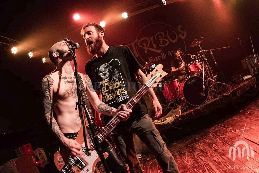 Pablo Aguirre Juli sobre el escenario, con sus amigos de Colérico Buda .
