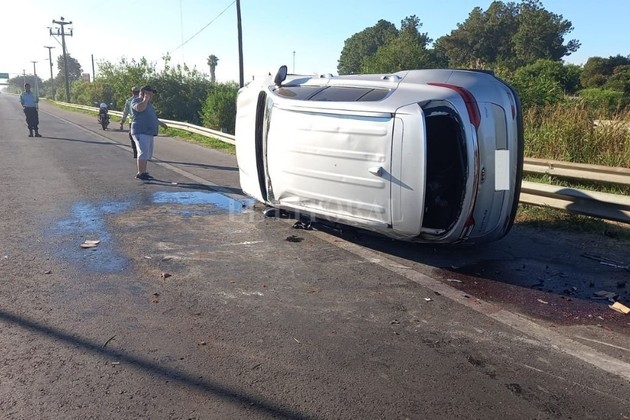 En dicho lugar, y por causas que se tratan de establecer, un Kia sedan, modelo Sportage, perdió su línea normal de marcha y terminó dando un vuelco.