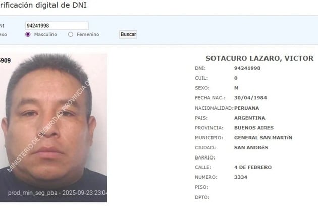 Lázaro Víctor Sotacuro, uno de los prófugos más buscados por el brutal triple femicidio de Florencio Varela, fue detenido este viernes en la localidad de Villazón, Bolivia. Sotacuro está señalado como el hombre que manejaba la camioneta blanca en la que Brenda Del Castillo, Morena Verri y Lara Gutiérrez fueron vistas con vida por última vez.