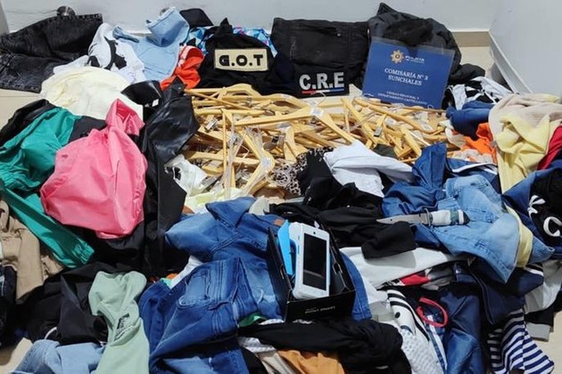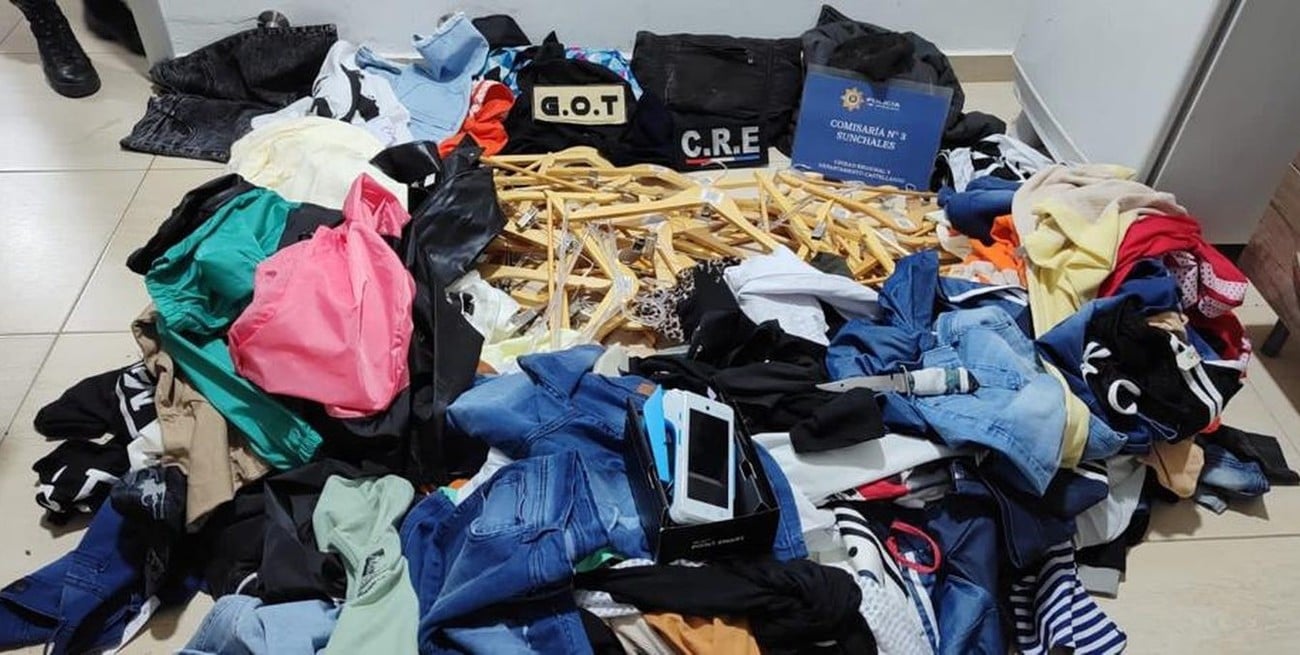 Los involucrados se llevaban 135 prendas de vestir varias, 58 perchas de madera, un posnet de Mercado pago, y la suma de $21.500.