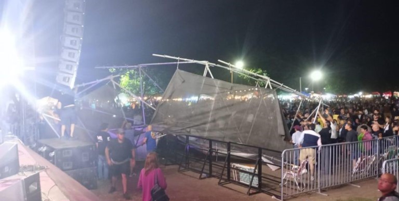 Parte del escenario terminó cediendo producto de los fuertes vientos.