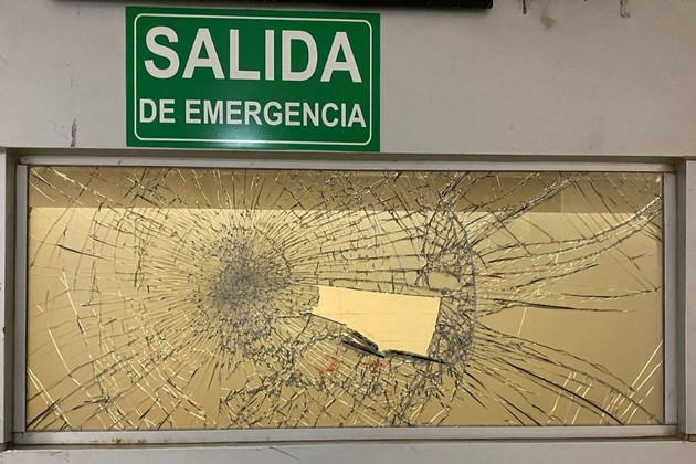 Luego de algunos gritos, un vidrio estalló por algún tipo de impacto. "No sabemos si fue una trompada, un piedrazo o alguna otra cosa", especuló alguien que estaba en las inmediaciones.