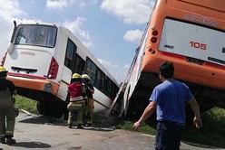 El estallido de la rueda hizo que el chofer perdiera el control y cruzara al carril contrario impactando de frente con otro colectivo de la misma empresa que circulaba en sentido contrario.