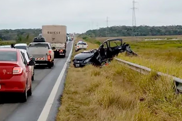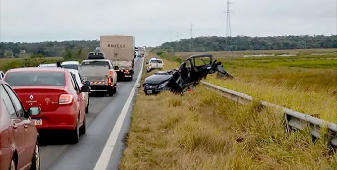 En consecuencia, el auto habría salido despedido sobre uno de los laterales de la calzada perdiendo el techo y quedando totalmente destruido sobre el guardarraíl.