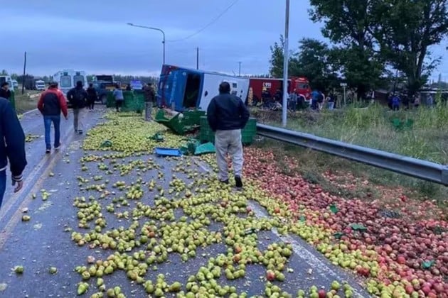 Por otro lado, las frutas del vehículo de carga terminaron esparcidas sobre la ruta y el tránsito tuvo que ser interrumpido. Trabajaron en la zona peritos de Policía Científica y bomberos.
