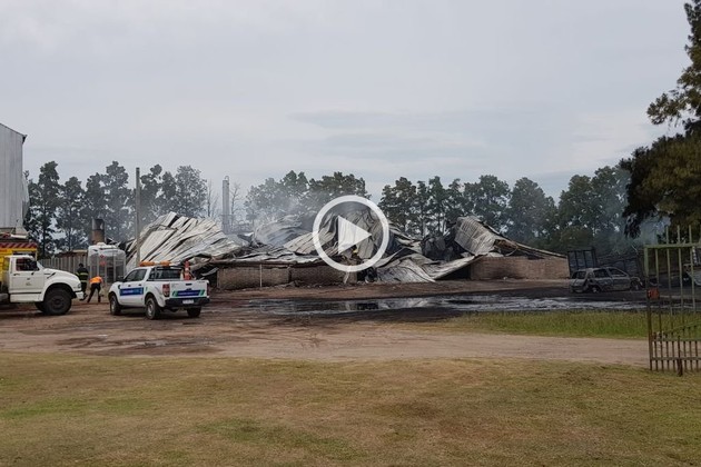 Las pérdidas en la planta de producción fueron totales, e incluyen a un camión que estaba en la entrada con toneles de combustible, el que también resultó destruido por completo.