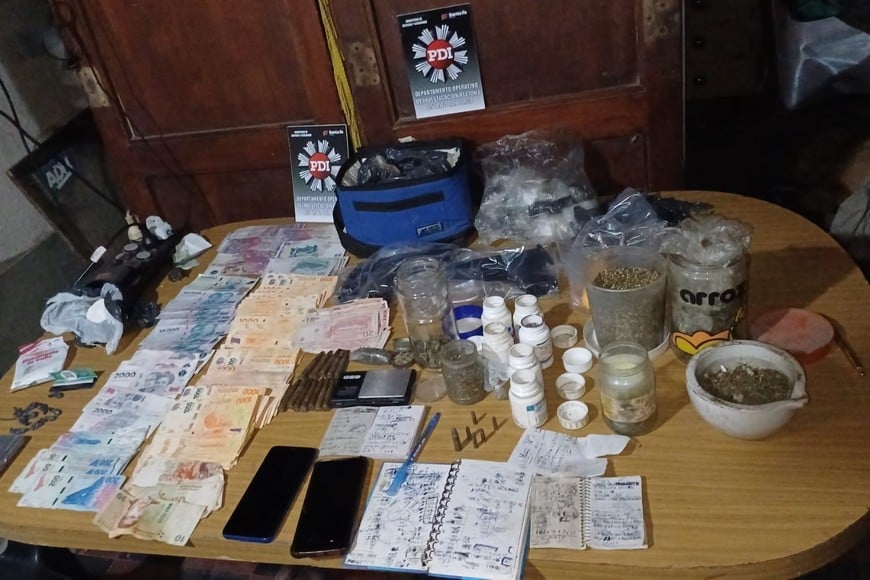 Durante los procedimientos, se secuestraron más de 300.000 pesos, cuatro teléfonos celulares, dos balanzas, 15 plantas de marihuana, dos pistolas de aire comprimido, proyectiles de diferentes calibres y otros elementos de interés para la causa.