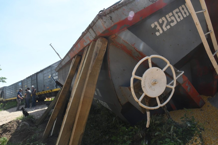 Además de la locomotora también descarrilaron varios vagones, los que fueron atacados por varios sujetos que abrieron sus boquillas y sustrajeron parte de la carga de siete vagones (granos de maíz y soja).