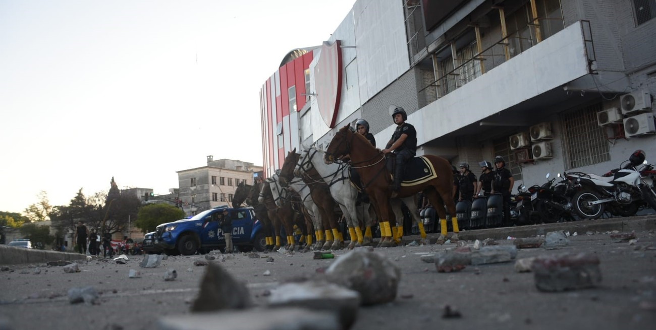 Por otra parte, se informó que hubo gente que salía del portón de hierro de López y Planes y tiraba piedras desde la esquina del estado cubierto Ángel Malvicino.