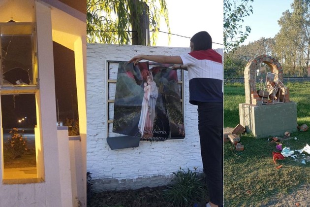 Destrozaron imágenes de yeso y banners vinculados con la Virgen María, la Difunta Correa y el Gauchito Gil en Arocena, Coronda, Desvío Arijón y se reportó que también hubo destrozos en Sauce Viejo, al menos.