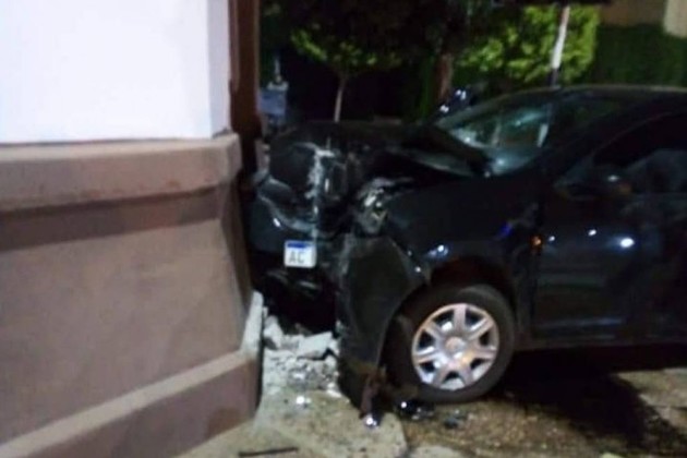 Según informaron fuentes policiales, el automóvil Renault Logan color negro se desvió de la calzada pavimentada por motivos que aún se desconocen, lo cual provocó el choque contra la puerta del domicilio ubicado en la ochava.