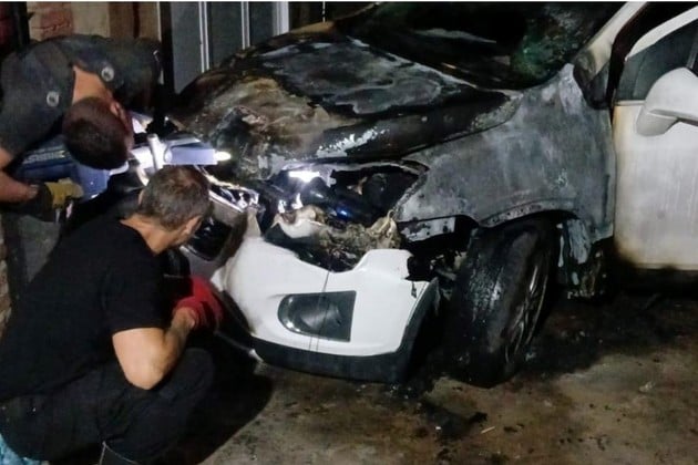 Al igual que en el caso anterior, al momento de la llegada de los bomberos el fuego ya había sido extinguido por el propio dueño del automóvil, que utilizó recipientes con agua.