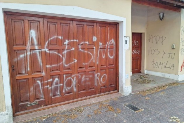 Las pintadas incluyen frases y palabras como “asesino”, “falopero”, “bórrate del barrio HDP”, “HDP vos y tu familia”, “garca”, entre otras consideraciones.