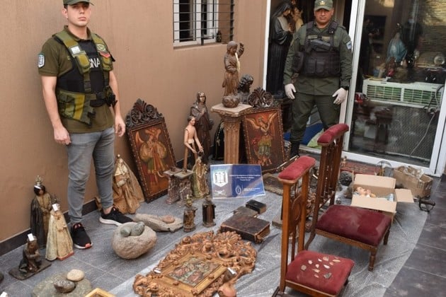 Como resultado de los allanamientos, los investigadores detectaron un total de 98 piezas arqueológicas, bienes patrimoniales y obras de arte sacro religioso de alto valor cultural.