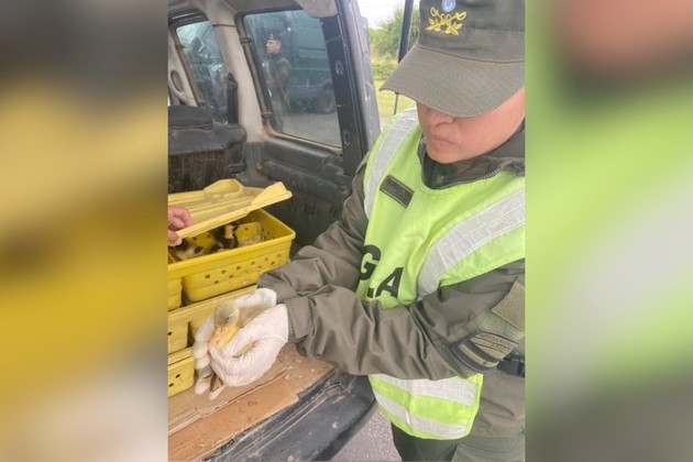Al momento de la inspección, los uniformados escucharon sonidos provenientes del baúl. Al abrirlo, en presencia de testigos, los gendarmes hallaron 150 patos pekin que estaban distribuidos en tres cajas plásticas de color amarillo.