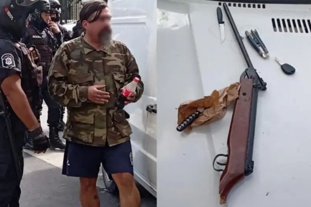 El extraño hecho se registró luego de que el hombre fuera denunciado por amenazar a una automovilista con el aire comprimido. El sujeto fue detenido.