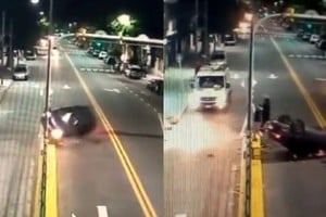 El incidente ocurrió en la madrugada del miércoles, cuando una cámara de seguridad capturó el momento en que un automóvil azul intentaba ingresar al paso bajo nivel en Avenida Dorrego, entre las calles Rodney y Guzmán.