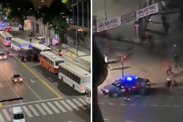 Según informes policiales, las agresiones iniciaron en las inmediaciones del estadio de Excursionistas, en La Pampa y del Libertador hacia un grupo de 10 personas y no tres, como se aseguró en un principio.