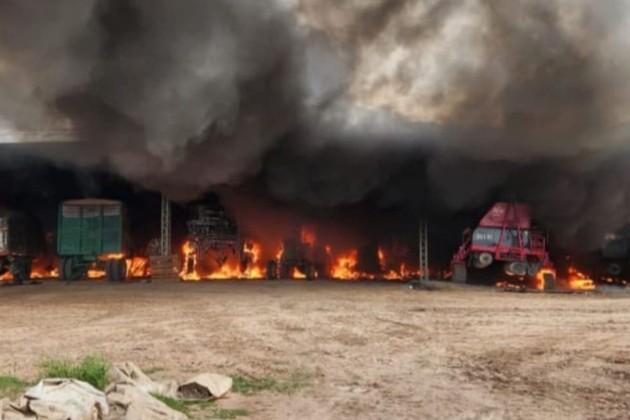 El devastador incendio destruyó en cuestión de minutos: 4 tractores, 2 máquinas fumigadora (mosquito), 2 sembradoras, 1 camión aguatero y 2 tolvas con semilla.