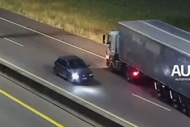 Un video publicado en las redes sociales de la empresa Autopistas de Buenos Aires muestra el momento en el que un auto oscuro entra a la Autopista Buenos Aires-La Plata en el km 41, Villa Elisa, en contramano.