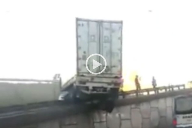 Este miércoles en horas de la mañana se registró un peligroso siniestro vial en plena Avenida General Paz en la ciudad de Buenos Aires, donde un camión quedó colgado de un puente.