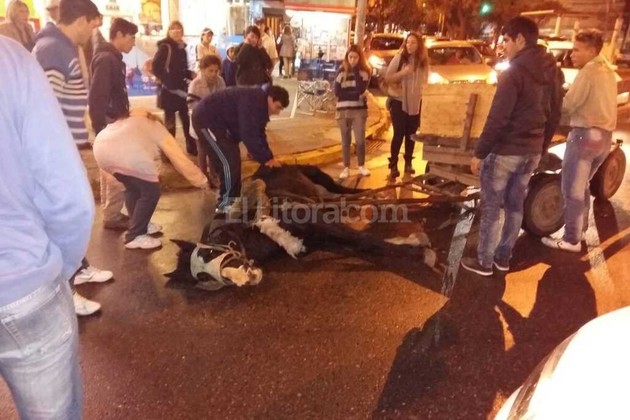 El episodio ocurrió cuando el equino no resistió más y terminó por caerse en el transitado lugar. La inusual situación despertó la curiosidad de automovilistas y transeúntes que pasaban por allí. Un lector de El Litoral se transformó en el principal testigo del hecho y frenó en el lugar para llamar al 911.