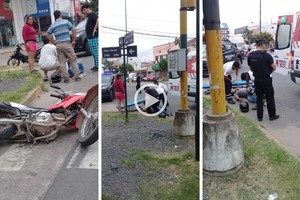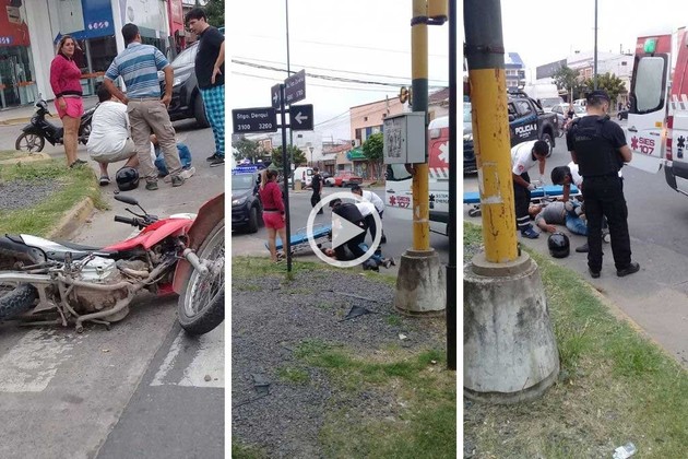 Producto del choque, ocurrido en la transitada zona de la Avenida Facundo Zuviría y Derqui, quien conducía el vehículo de menor porte se llevó la peor parte. Se trata de un hombre mayor de edad que terminó tendido en el suelo.
