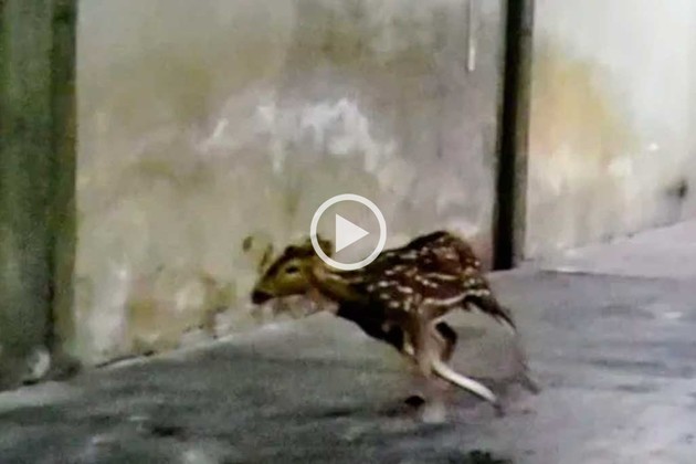Grata sorpresa se llevaron los encargados de un edificio al encontrar un ciervo atrapado en la cochera de la torre.