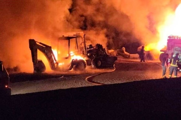 Una vez que el empleado de seguridad escapó del lugar, los atacantes incendiaron cuatro máquinas viales y la casilla donde se apostaba el sereno.