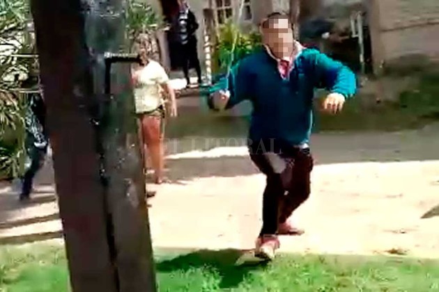 En otro video grabado hace ya unos meses se puede observar otro de los tantos conflictos ocasionados por estas familias en el barrio. En esos cinco segundos se ve a uno de los varones en su intento de agredir a la mujer con un fierro.