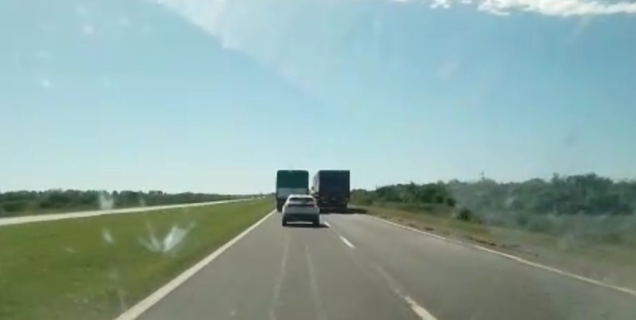 Uno de los rodados no completaba el sobrepaso, provocando el caos vehícular. Una camioneta los rebasó por la banquina.
