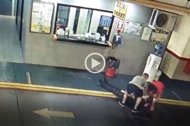 En el inicio del video, se ve a estos tres últimos hablando con el playero, quien se acerca al lugar donde se encontraba la mujer y mientras habla con ella, uno de los jóvenes le dio un fuerte golpe en la cara, tras lo cual el empleado cayó inconsciente al piso. Según puede verse, los otros dos jóvenes se acercaron, trataron de incorporarlo, pero como no pudieron y empezaron a mojarle la cara, pero el hombre, de 60 años, no reaccionó.