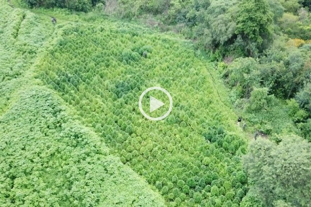 Al momento de ingresar a la finca, un drone voló sobre el lugar y captó la magnitud del hallazgo. Se trata de las mayores plantaciones clandestinas de la historia reciente.