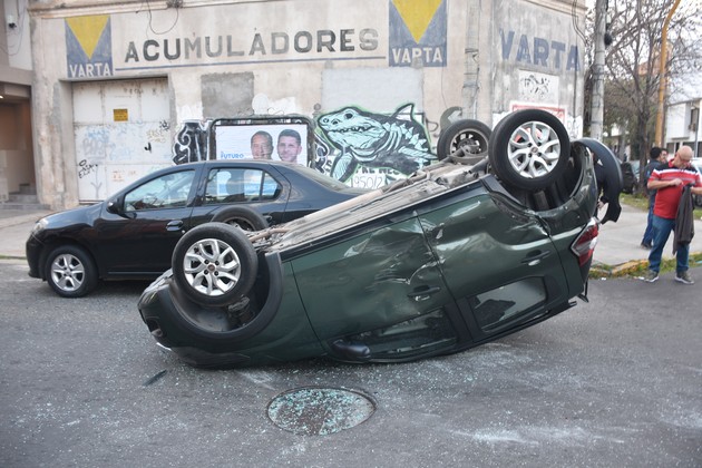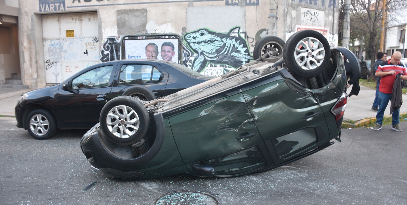 Durante la mañana del lunes, en la intersección de Belgrano y Junín de la ciudad de Santa Fe, se produjo un impresionante choque y vuelco.