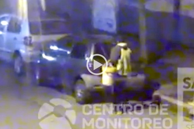 La acción, que duró pocos segundos, fue captada por las cámaras de seguridad de la Central de Monitoreo de la Central de Emergencias 911, desde donde se alertó a efectivos policiales que rápidamente llegaron al lugar y lograron detener al delincuente, que estaba a muy pocos metros del auto del que había robado.