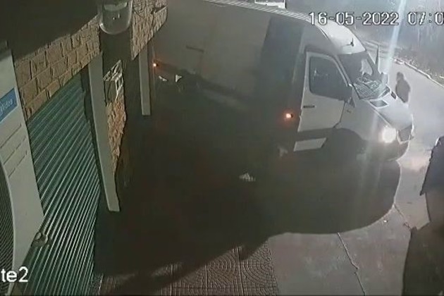 De acuerdo con las imágenes de una cámara de seguridad, el asalto comenzó a las 7.04 y al verse rodeado, el conductor de la camioneta dio marcha atrás, chocó contra uno de los autos de los ladrones y se subió a la vereda e impactó contra el frente de una panadería, donde quedó detenida.