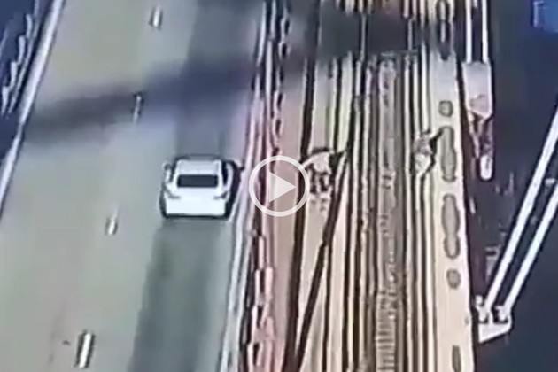 El momento exacto en el que ocurre el trágico incidente fue captado por las cámaras de seguridad del mismo puente. En la grabación se puede observar a ambos hombres descender de un vehículo color blanco para luego arrojarse al río.