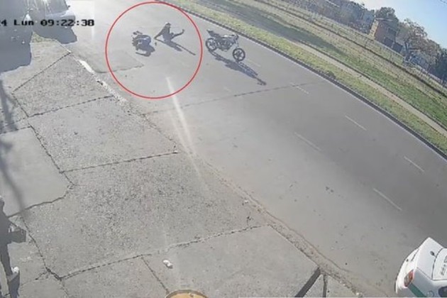 En el video captado por una cámara de seguridad se observa el momento del incidente, en el que el hombre es embestido de atrás y queda tirado en el asfalto. El conductor de la moto, por su parte, cayó sentado, mientras el rodado continuó andando sólo unos metros más. Se levantó inmediatamente, agarró su celular y se fue a buscar la moto, sin ni siquiera mirar al hombre que estaba herido a centímetros de distancia.