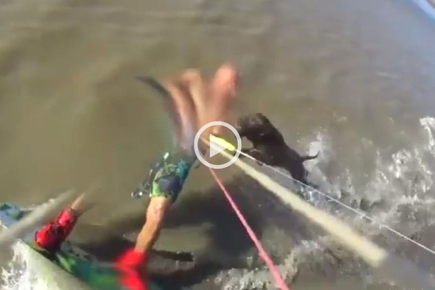 El incidente, que fue registrado por la cámara que tenía el hombre en el parapente, ocurrió cuando el perro se abalanzó sobre las olas y lo mordió en forma feroz, mientras que la víctima intentaba en forma infructuosa abrirle la boca.