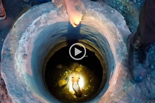 Este lunes por la tarde en la ciudad de Rosario personal policial rescató a un perro que se cayó en un pozo.